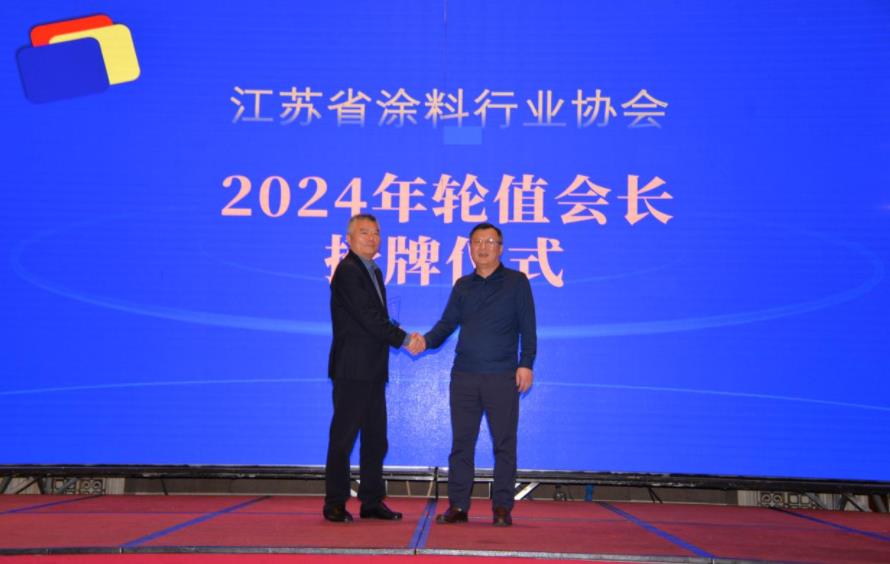 上午的会议由江苏省涂料行业协会执行副会长/秘书长丁智主持。会议内容包括会员大会、十五周年庆典和主题报告三大部分。在会员大会环节,丁副会长就“江苏省涂料行业协会2023年工作报告及2024年工作思路”向会员大会作了汇报,对2023年协会活动、咨询服务、标准审定、信息交流等4个方面的9大项工作内容做了详细总结,得到会员企业的广泛认可。2024年江苏省涂协将围绕国家“双碳”目标和绿色发展,以及促进我省中小民营涂料企业的“专精特新”发展展开10个方面的工作。随后协会轮值会长/无锡造漆厂有限公司董事长安敏琦向大会做了“2023年协会财务报告”,协会会长杨汉洲在大会上进行了2024年江苏省涂料行业协会轮值会长授牌仪式,常州光辉化工有限公司董事长许建刚接任2024年轮值会长。