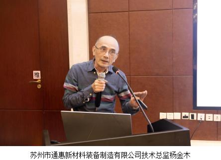 苏州市通惠新材料装备制造有限公司技术总监杨金木在会上做了《在线分散与高效研磨》技术报告。杨总的报告主要包括研磨分散技术、在线分散与高效研磨两大部分,详细介绍了湿法研磨分散工艺、预分散的重要性、研磨及分散效果、IWD无尘高效生产工艺(吸粉分散)和湿法分散吸粉系统(真正的在线分散),通过对比研究展示了在线分散的高效率。