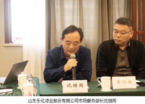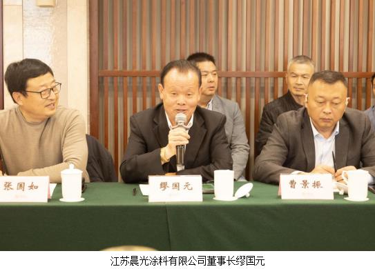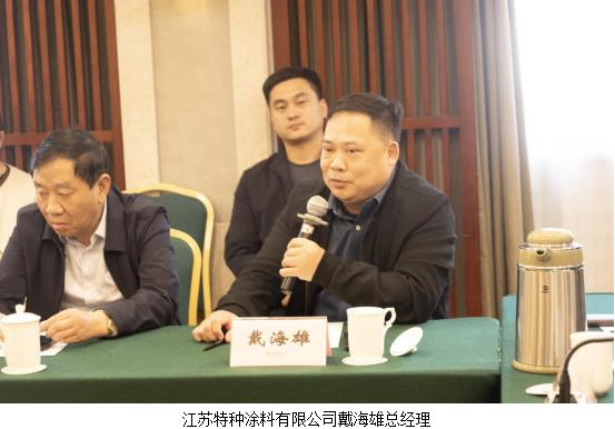 会上还有不少企业介绍了它们的新技术和新产品。江苏群鑫粉体科技股份有限公司董事长张国如介绍了分散性好的低粒径产品,通过选用不同的表面活性剂改性,生产出特质产品,可以为客户提供定制产品,大长径比、吸油值很低的产品压载舱涂料、风力发电设备涂料和复合材料表面用涂料得到很好地应用。江苏双盛锌业股份有限公司董事长徐桂森说,公司的锌粉产品部分供给涂料企业。控制锌粉粒径非常重要,我们的锌粉产品质量好,公司在江苏扬州和湖南设有两个生产基地。苏州市通惠新材料装备制造有限公司董事长赵惠东介绍说,涂料装备行业内卷也非常严重。涂料设备与涂料的生产模式不同,生产周期长,往年利润在20%以上才能保证企业正常运转,现在我们利润仅有10%左右。我们不做价格竞争,向高端产品要利润,专注于分散研磨设备的研究与开发。近两年开启了在线研磨模式,在清洁化和无尘化方面取得很大进步。莱阳红安化工有限公司总经理高健荣表示,公司为合成树脂生产企业,以定制化产品为主,在科技研发、光固化技术等方面投入很大,欢迎大家到莱阳指导工作。山东宇龙高分子科技有限公司董事长王加群介绍说,我们公司是在座三省企业中唯一不同的企业,主要为丙烯酸胶粘剂,以建筑行业、汽车、光伏等为主要领域。