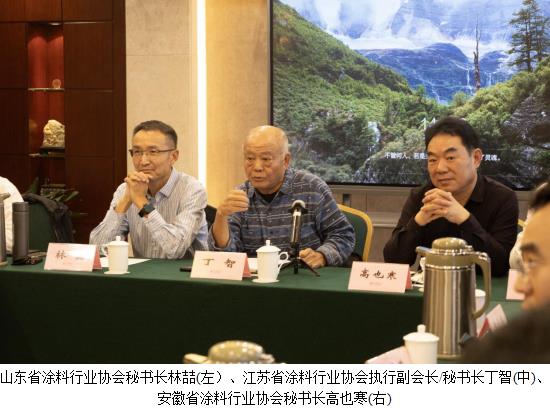 在圆桌会议上,三省涂料企业围绕各自的发展经验展开了交流。山东齐鲁漆业有限公司董事会主席孙洪源在发言中谈到,我们山东没有江苏发展的好,没有安徽发展的快。我们齐鲁发展了近40年,能够生存下来实属不易,当今齐鲁有员工1000人左右,土地800多亩,在全国同行都是大企业了。2016年是我们最好的一年,创收4个多亿元。我们的产品布局为30万吨工业漆,10年达到30亿元营收。苏州吉人高新材料股份有限公司董事长吉富华说,吉人起步于1998年,刚开始产品很低端,2002年开始产品转型,产品结构转型带来好的效果,并通过营销模式的调整,2020年公司实现5亿元的营收。在今年的辽宁盘锦招投标中我们胜出,相信我们还是有发展空间,在重防腐领域的毛利有可能翻一番。潍坊亚贝涂料有限公司董事长陈高峰谈到,我公司做家具漆,听了大家的发言,很受感动。家居的销售主要以经销商、代理商为主,公司的合作伙伴全国开花,今后公司与代理商的合作模式如何改进,目前尚做不到去中间商化,但需要改进。另外,我们会尝试产品出海和海外投资建厂。山东乐化漆业股份有限公司市场服务部长沈继雨说,公司在寿光侯镇海洋化工园区投资建设“100万吨/年高端涂料及配套包装制品生产项目”。该项目占地35万m2,综合投资25亿元。一期“100万吨油漆助剂加工项目”计划3~5年建成,投资15亿元;二期“100万吨高端涂料及配套包装制品生产项目”计划2~3年完成,投资10亿元。欢迎大家光临指导。安徽开林新材料股份有限公司王和山总经理介绍了公司情况,开林在长江、近海、淮河等地区销售的船舶漆不少。远洋海船用涂料尚未涉及,欢迎大家与我们合作,共同发展。山东奔腾漆业股份有限公司树脂部经理李凡昌介绍说,奔腾公司是一家集树脂和涂料研发、生产、销售于一体的国家级高新技术企业,现有员工500余人,2015年挂牌新三板,与国内众多大型企业建立了长期合作关系,并提供一体化涂装解决方案及危化品运输服务。现在公司已经进入产业园。安徽山度士建工集团股份有限公司总经理李新想指出,前些年我们紧跟市场步伐得到了发展。但受房地产行业影响,公司发展受阻。我们计划换赛道,投资地块投建新项目,光设计稿已经改了好几稿,方案不断在改。听了这么多同行的故事,很受启发,希望大家给我们多提建议。安徽科创美涂料科技股份有限公司董事长周先林表示,听了很多山东和江苏企业的发言,发现我们彼此之间存在互补性。我们现在也在搞智能化改造,希望定向邀约相关企业合作,今天的收获很多,碰撞、交流可以持续,也更有价值。