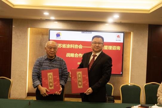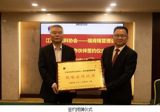 在圆桌会议结束前,举行了江苏省涂料行业协会与瑞肯锡管理咨询(佛山)有限公司合作协议的签约仪式,江苏涂协执行副会长/秘书长丁智与瑞肯锡管理咨询(佛山)有限公司董事长李学林共同出席签约仪式,江苏省涂料行业协会会长杨汉洲授牌。